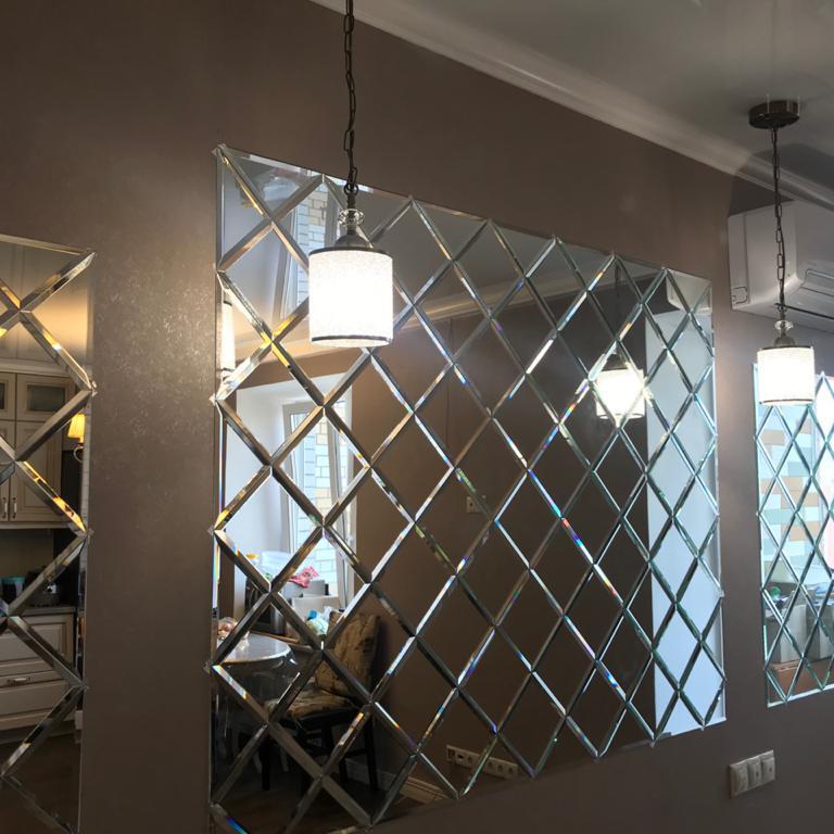 Три зеркальных панно в кухне-столовой, Пермь.